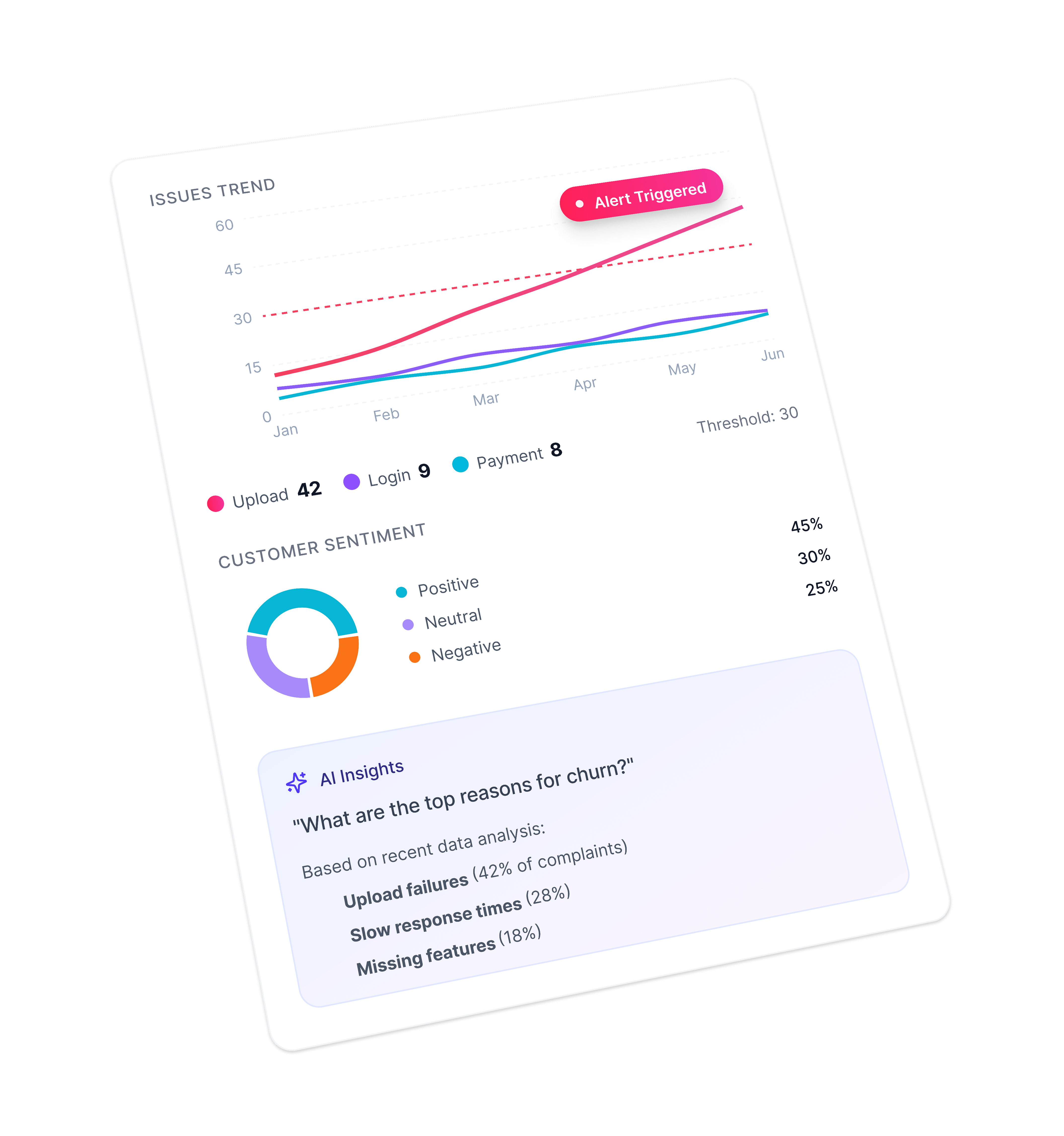 Dig deep into customer conversations manually, or automate your analysis to get daily/weekly reports on reasons for churn.